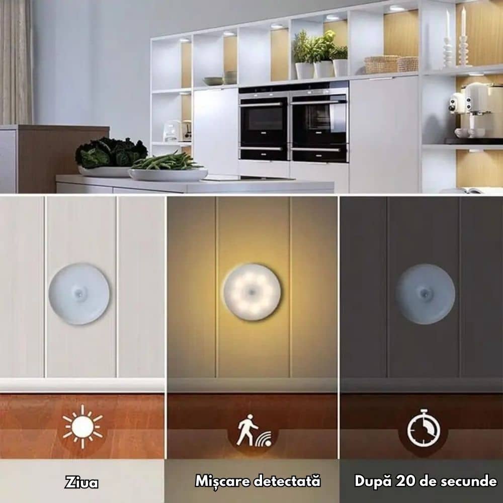 Cu lampa inteligentă cu senzor de mișcare, ai lumină doar atunci când ai nevoie! Wireless, reîncărcabilă și gata de montat în câteva secunde.