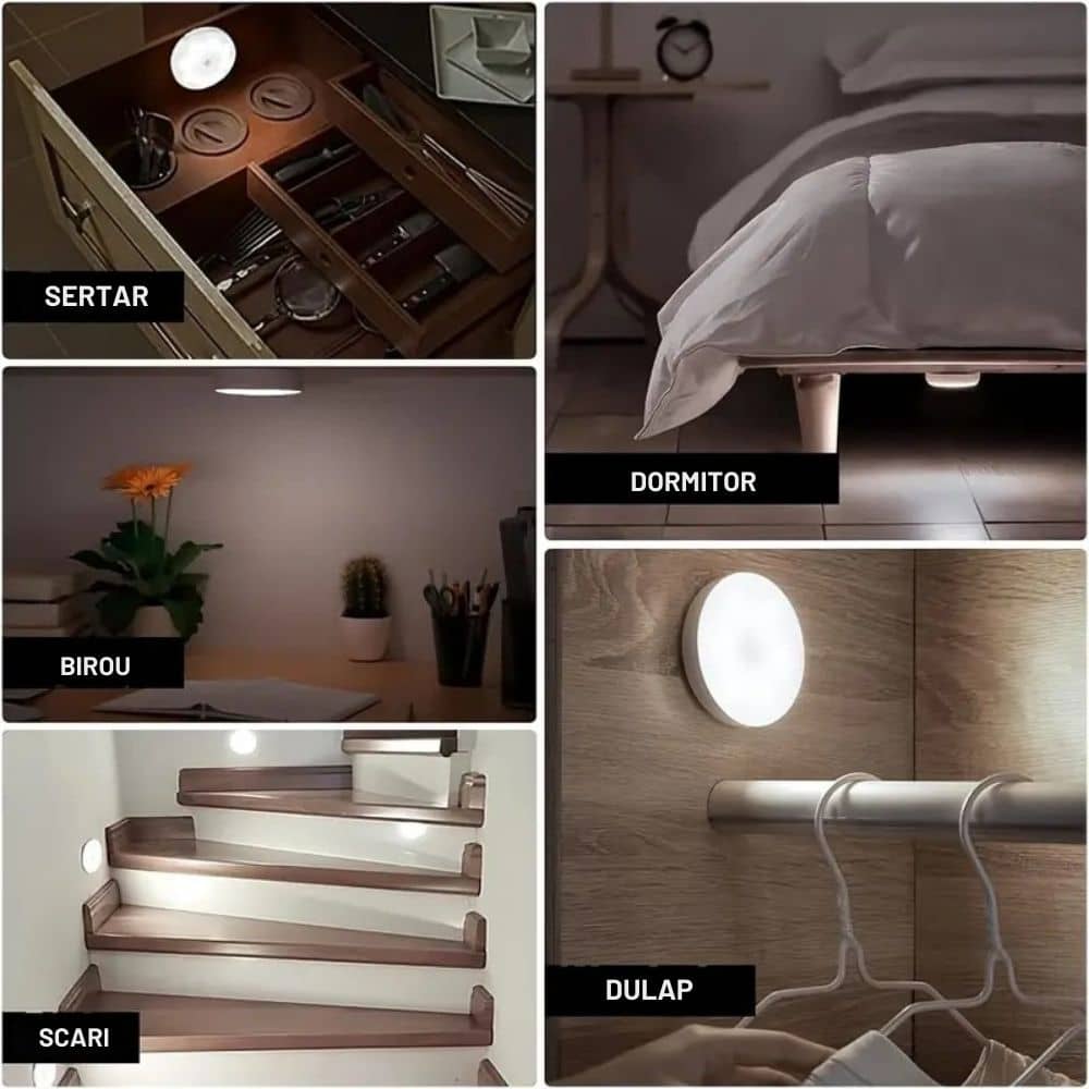 Monteaz-o oriunde ai nevoie de lumină suplimentară: pe hol, scări, dormitor, bucătărie, baie, dressing, balcon, garaj, debara sau chiar în rulote și case de vacanță. O soluție practică pentru fiecare colț întunecat al casei tale.